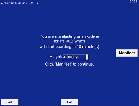 Measuring has shown that it will save up to USD 20.000,00 of staff salary per season if jumpers manifest themselves. As a result a major US drop zone is able to offer jumpers a 10 % discount on all jumps manifested via DZ-Manager POS-Mode.